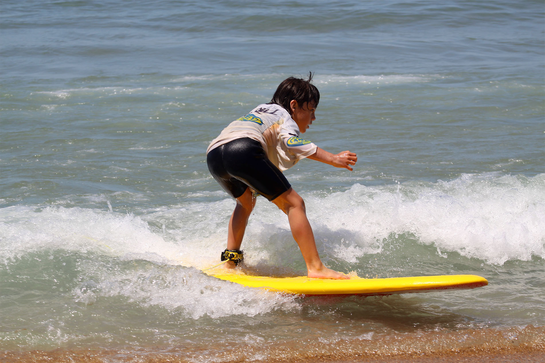 Scol Voyages > Activités > Automne, Été, Printemps > Surf > petit garçon en train de faire du surf
